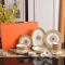 Este bone china tableware sets es de calidad AAAAA 1: 1 (excelente). Los materiales utilizados son idénticos a los originales. Las marcas registradas son indistinguibles del auténtico. Las fotos toman por bone china tableware sets real, lo que usted recibe será 100% iguales con nuestras fotos.