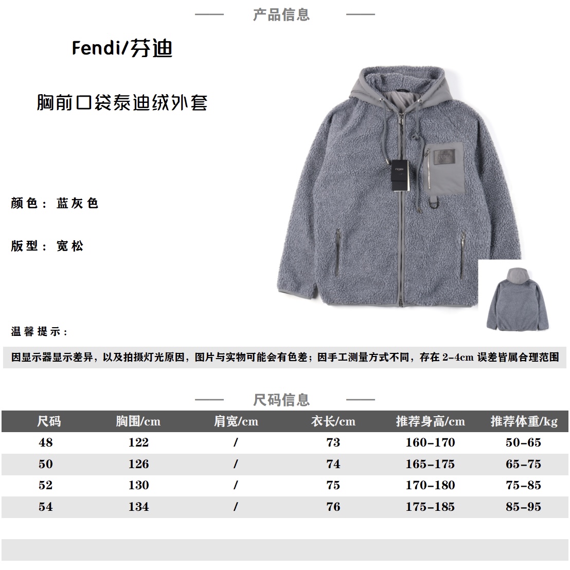 Este ropa es de calidad AAAAA 1: 1 (excelente). Los materiales utilizados son idénticos a los originales. Las marcas registradas Fendi son indistinguibles del auténtico. Las fotos toman por ropa real, lo que usted recibe será 100% iguales con nuestras fotos.