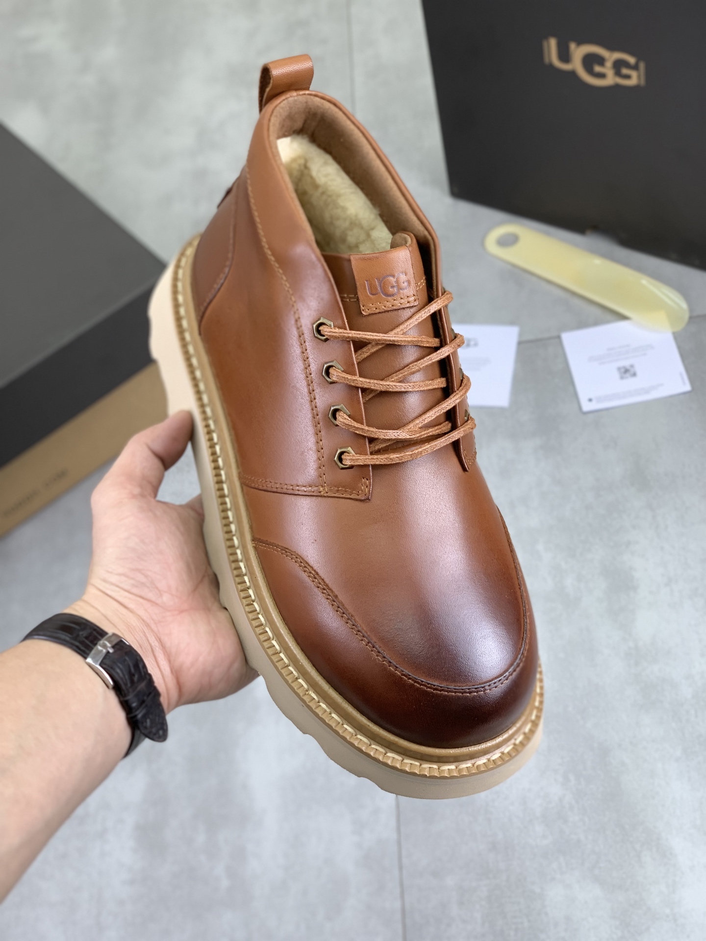 Este zapatos es de calidad AAAAA 1: 1 (excelente). Los materiales utilizados son idénticos a los originales. Las marcas registradas UGG son indistinguibles del auténtico. Las fotos toman por zapatos real, lo que usted recibe será 100% iguales con nuestras fotos.