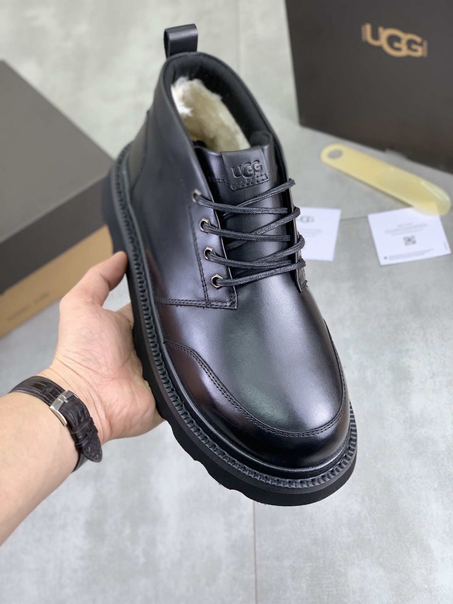 Este zapatos es de calidad AAAAA 1: 1 (excelente). Los materiales utilizados son idénticos a los originales. Las marcas registradas UGG son indistinguibles del auténtico. Las fotos toman por zapatos real, lo que usted recibe será 100% iguales con nuestras fotos.