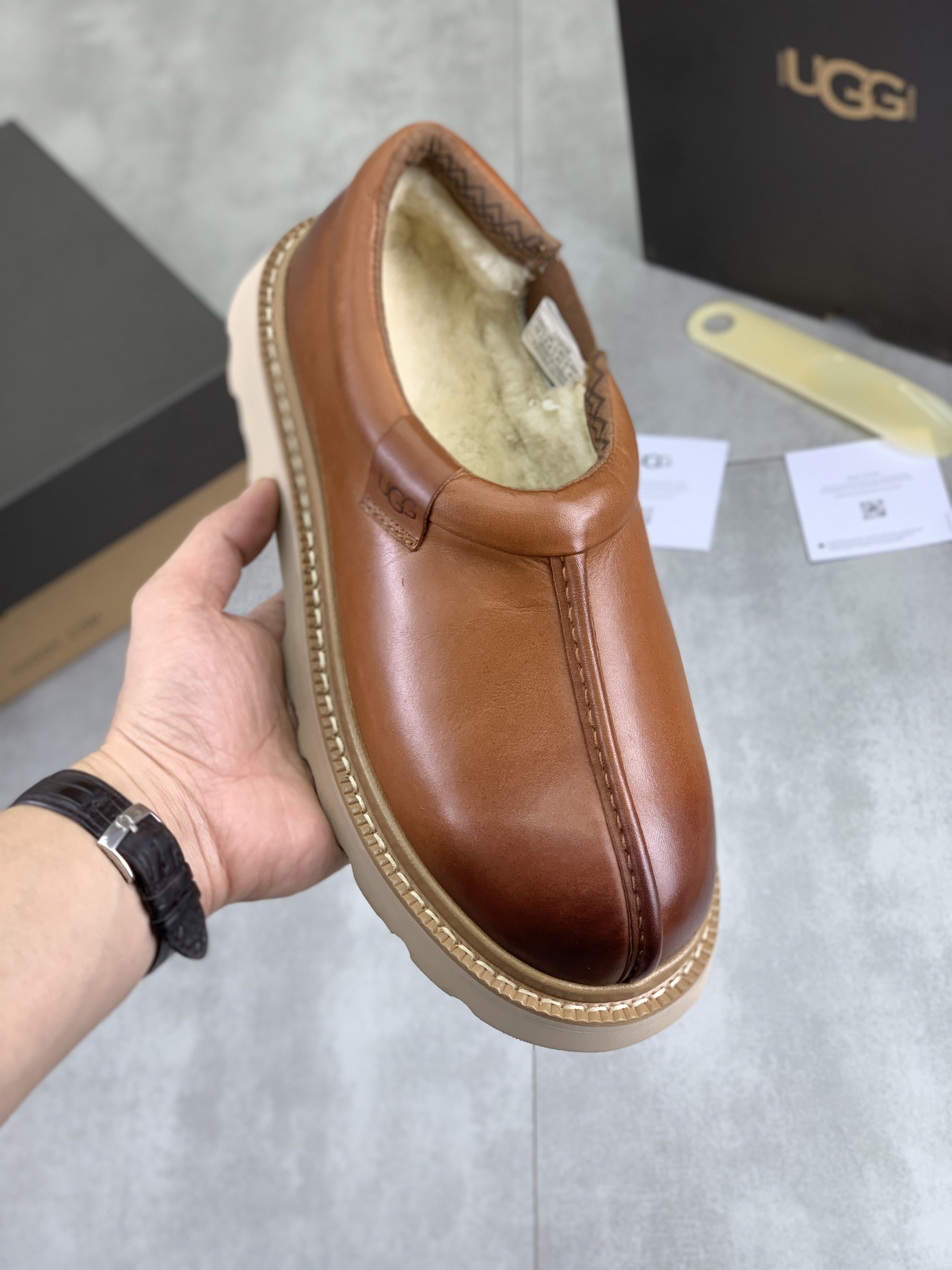 Este zapatos es de calidad AAAAA 1: 1 (excelente). Los materiales utilizados son idénticos a los originales. Las marcas registradas UGG son indistinguibles del auténtico. Las fotos toman por zapatos real, lo que usted recibe será 100% iguales con nuestras fotos.