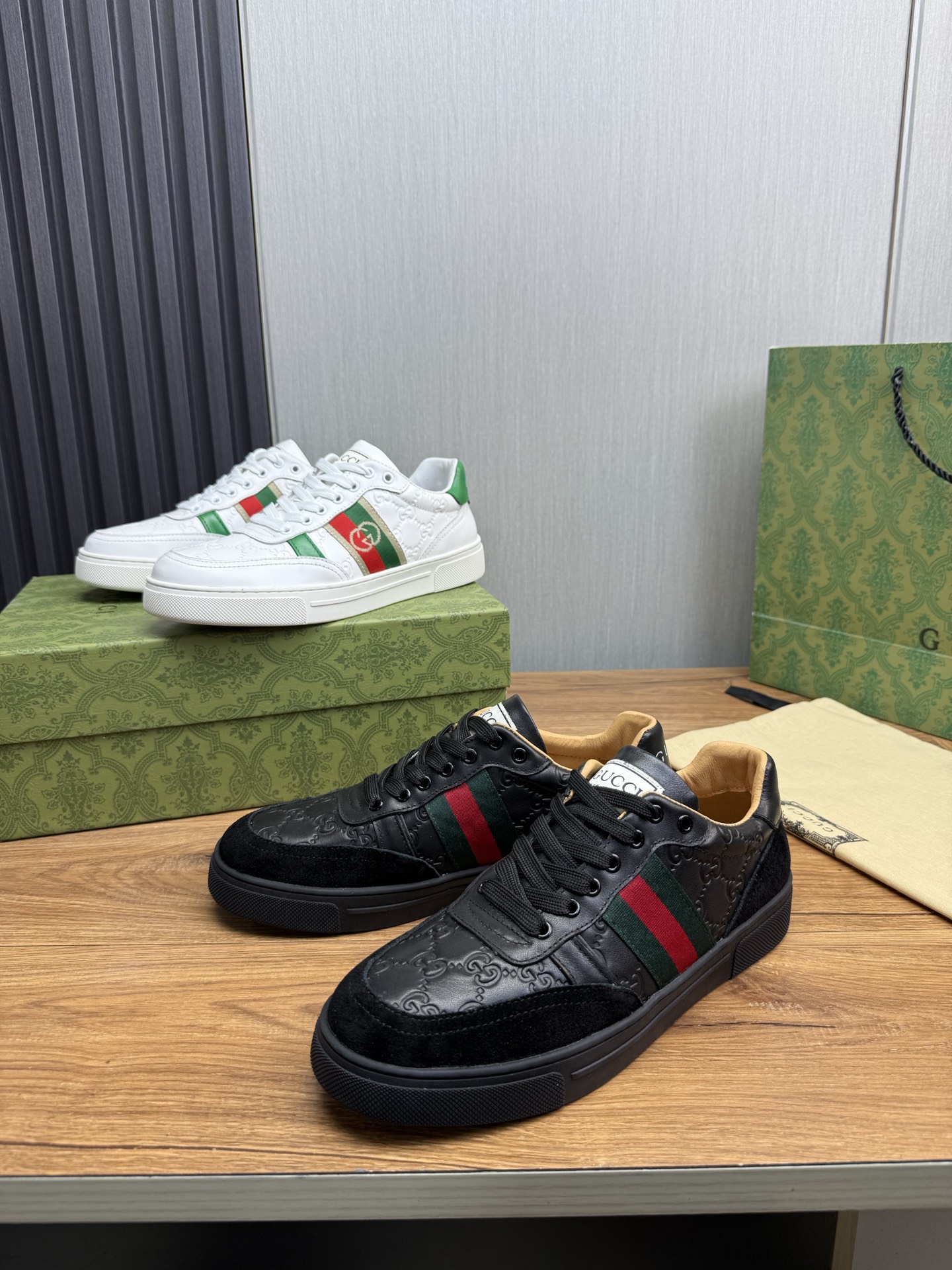 Este zapatos es de calidad AAAAA 1: 1 (excelente). Los materiales utilizados son idénticos a los originales. Las marcas registradas Gucci son indistinguibles del auténtico. Las fotos toman por zapatos real, lo que usted recibe será 100% iguales con nuestras fotos.