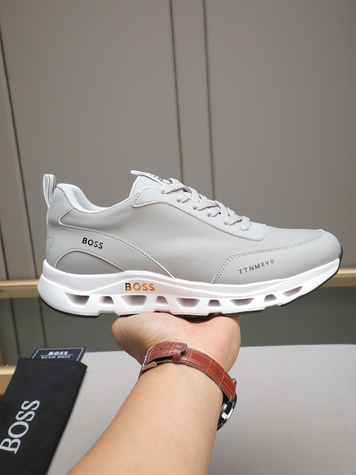 Este zapatos es de calidad AAAAA 1: 1 (excelente). Los materiales utilizados son idénticos a los originales. Las marcas registradas BOSS son indistinguibles del auténtico. Las fotos toman por zapatos real, lo que usted recibe será 100% iguales con nuestras fotos.
