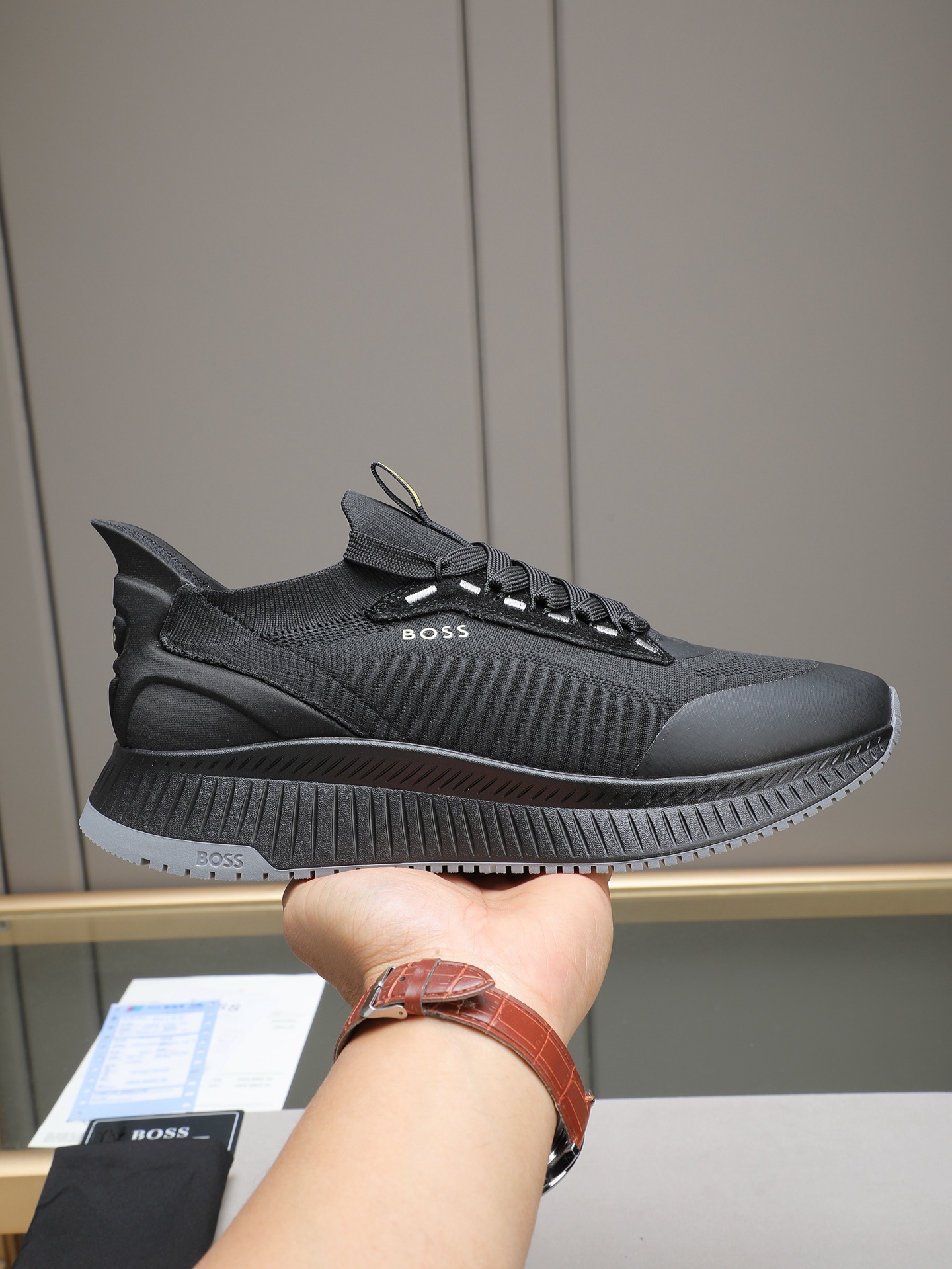 Este zapatos es de calidad AAAAA 1: 1 (excelente). Los materiales utilizados son idénticos a los originales. Las marcas registradas BOSS son indistinguibles del auténtico. Las fotos toman por zapatos real, lo que usted recibe será 100% iguales con nuestras fotos.