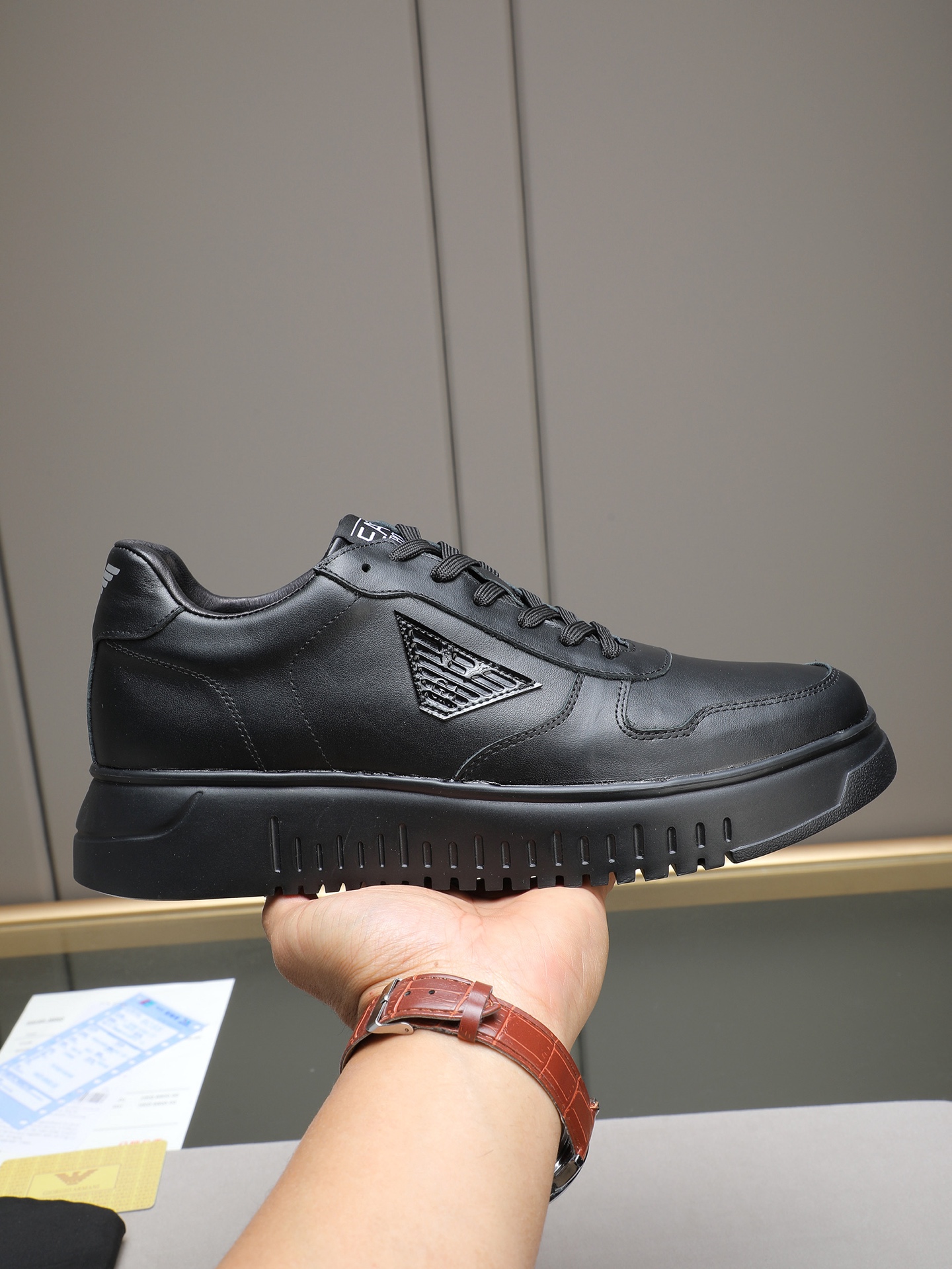 Este zapatos es de calidad AAAAA 1: 1 (excelente). Los materiales utilizados son idénticos a los originales. Las marcas registradas Armani son indistinguibles del auténtico. Las fotos toman por zapatos real, lo que usted recibe será 100% iguales con nuestras fotos.