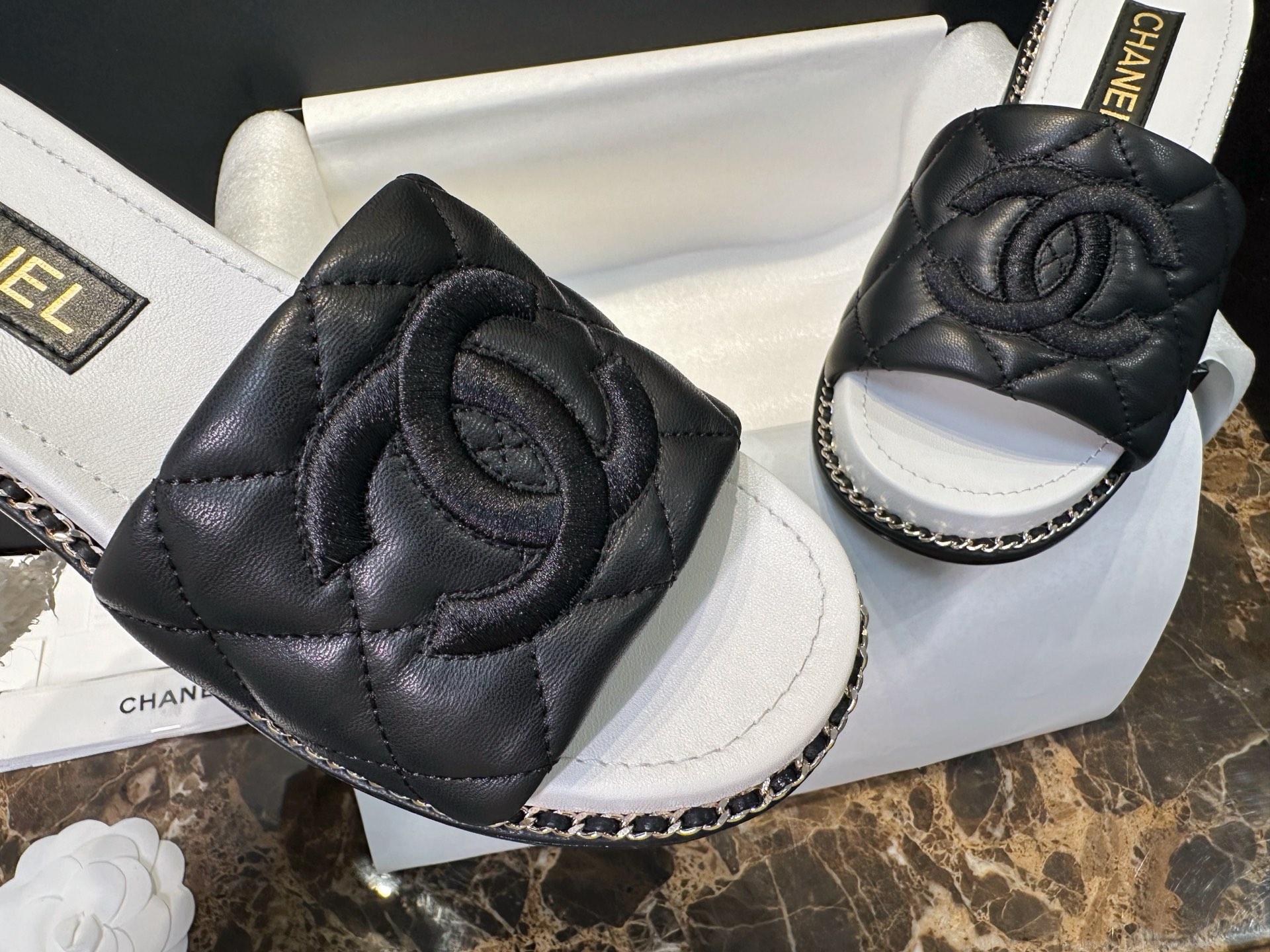 Este zapatos es de calidad AAAAA 1: 1 (excelente). Los materiales utilizados son idénticos a los originales. Las marcas registradas Chanel son indistinguibles del auténtico. Las fotos toman por zapatos real, lo que usted recibe será 100% iguales con nuestras fotos.